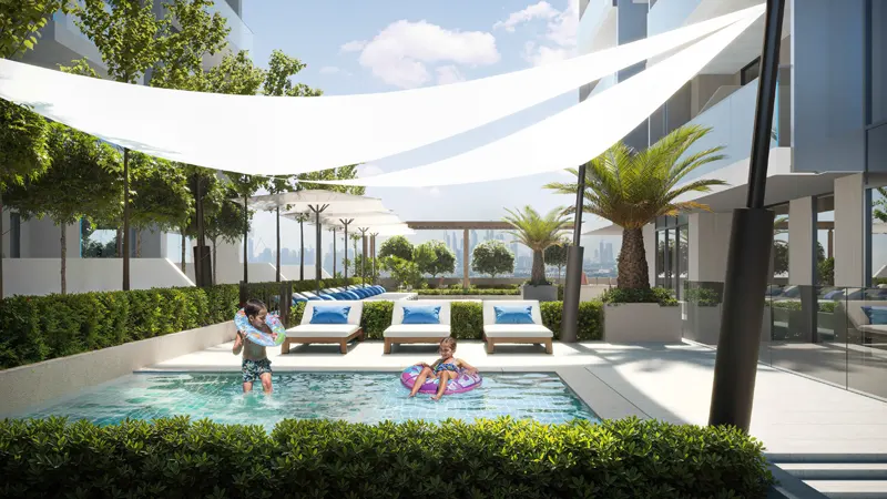 For those seeking relaxation and recreation, it offers an outdoor swimming pool with poolside sun loungers, inviting residents to dive into luxury and soak up the sun-kissed serenity. Meanwhile, the dedicated kids’ swimming pool ensures endless fun and safety for little ones, while the outdoor kids’ play area encourages imaginative play and exploration.