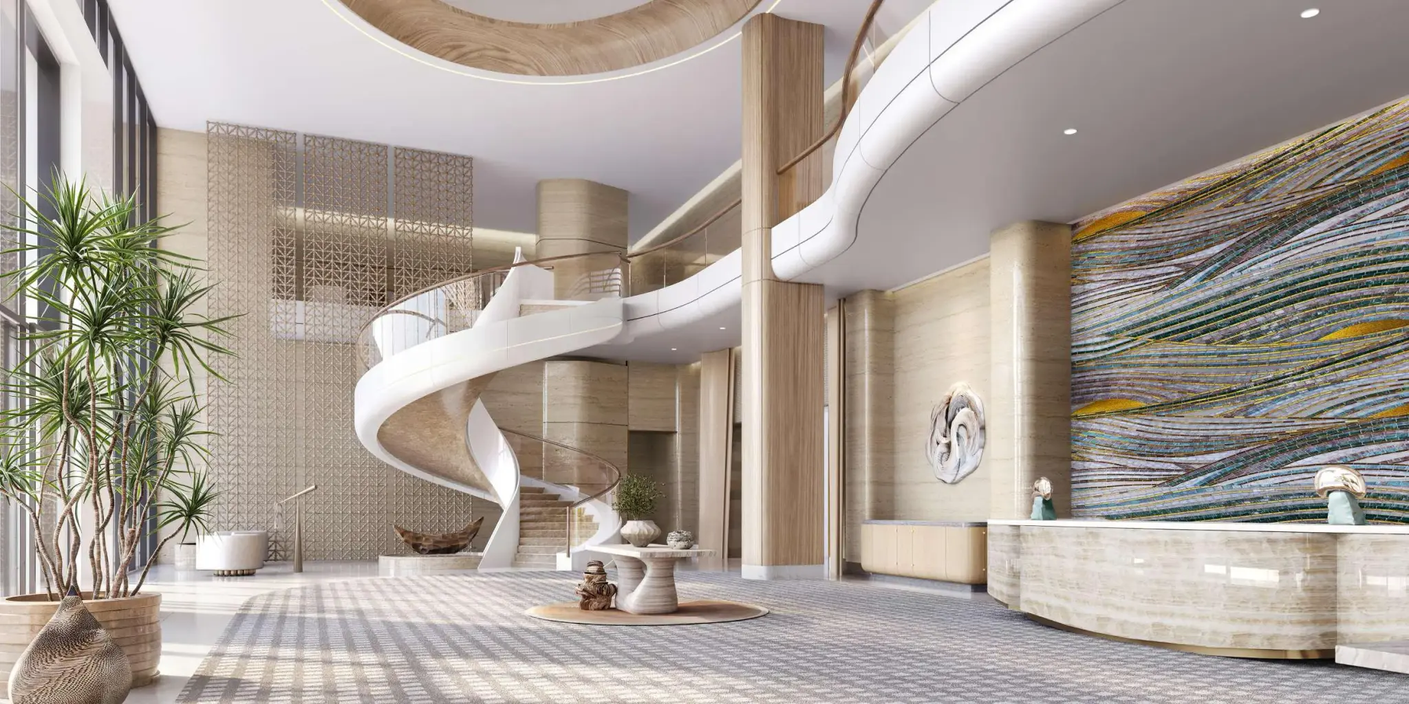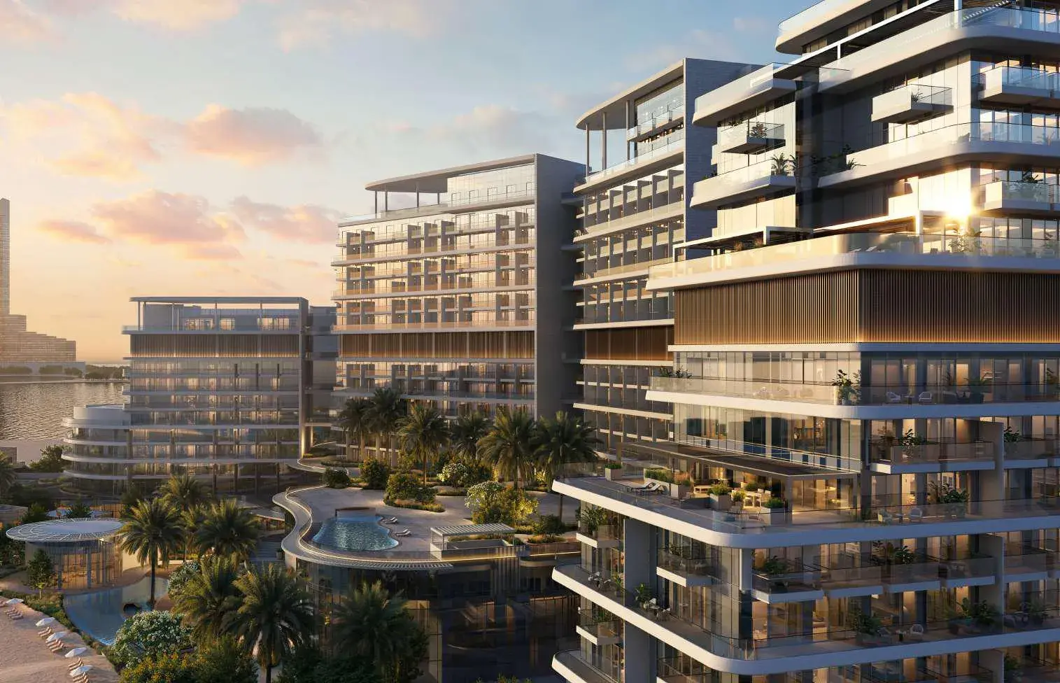 Nasim Al Bahr Residences embodies the essence of coastal sophistication and tranquility. Designed as a seamless dialogue between sea, sand, and sky, its twin sculpted towers stand as an architectural tribute to the natural rhythm of the Gulf. With its flowing lines, glass façades, and stone details, the development blends modern artistry with the timeless serenity of the Arabian coastline, creating an atmosphere where every sunrise and sunset becomes part of daily life.