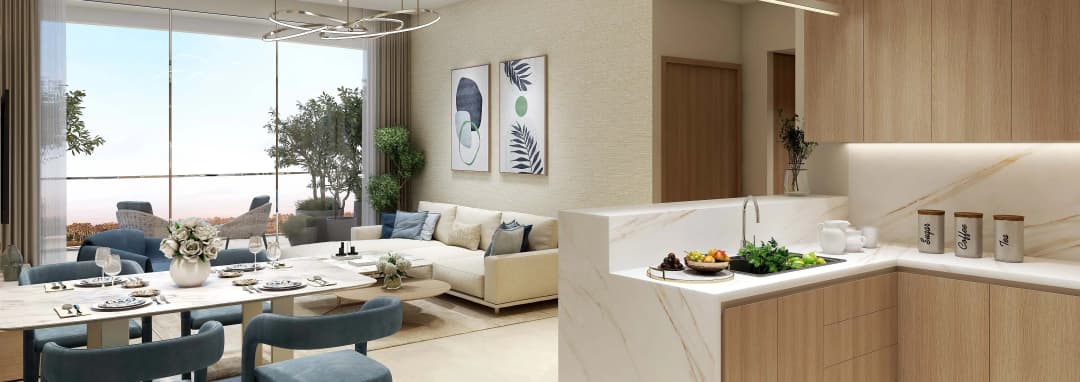 Interiors at Valencia are characterized by contemporary finishes and a refined Mediterranean aesthetic, with clean lines, soft color palettes, and high-quality materials used throughout. Apartments feature well-planned layouts with elegant flooring, modern wall finishes, and thoughtfully designed living spaces. Kitchens are delivered fully fitted with sleek cabinetry, stone countertops, and integrated appliances, while residences are offered semi-furnished, allowing residents to personalize their homes while benefiting from a polished, move-in-ready foundation.