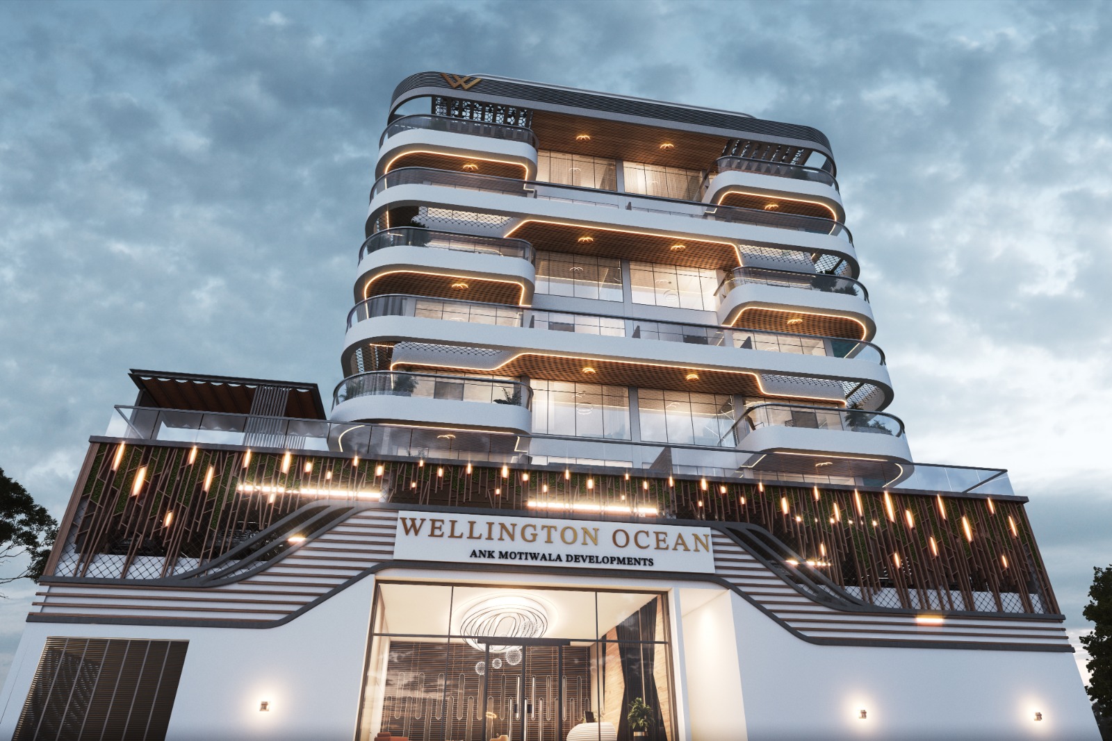 Wellington Ocean features an exclusive selection of one- and two-bedroom apartments, including residences with private pools or study rooms, and two duplex units, catering to diverse lifestyle preferences. Each home is designed with contemporary interiors, open-plan layouts, and high-end finishes, ensuring a refined living experience. The ground floor welcomes residents with an elegant reception, while the podium level provides secure parking and world-class amenities.